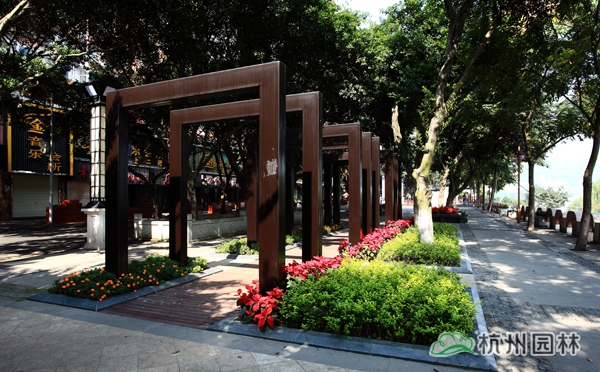 该工程起于滨江路孝顺路口,止于国窖长江大桥,是泸州市“两江四岸”规划建设的示范性工程。工程的设计不仅体现出了自然与生态融于一体的园林理念,注重对原生态环境的保护,节能环保材料的应用及后期养护的简单方便等,更重要的,将泸州深厚的历史文化元素融入其中,让人们在欣赏现代美景的同时,可以穿过历史的尘烟,记住这座城市的一路变迁,品味时光的流转。一处地标式的城市景观,将“醉美泸州”展现得琳漓尽致。