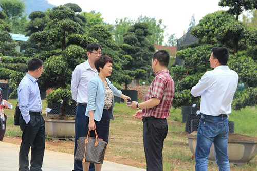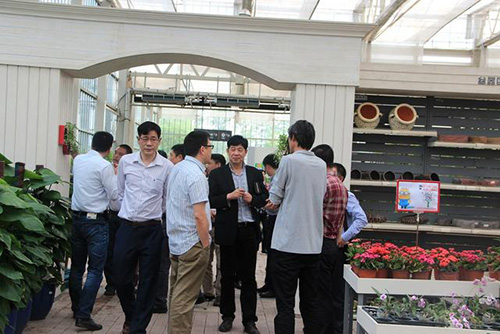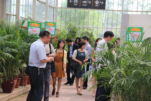 图为企业家在考察参观杭州园林画境·青山湖花园中心
