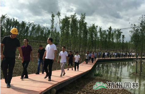 会议开始之前,兰溪扬子江PPP项目负责人首先带领大家参观了景观效果最突出的兰溪扬子江PPP项目四工区,该区域主要施工内容包括水处理、园林景观绿化、滨水平台及栈道,风雨连廊、折形平台、服务建筑及室外附属工程等。