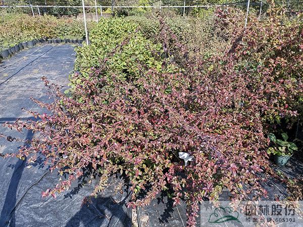 忍冬科荚蒾属,半落叶披散状灌木。花白色,花量大,花期6月。果红色,果期长,通常10月至次年1月。秋季叶色变暗红至鲜红,通常10月开始变色,部分红叶能一直保存至次年春天。病虫害较少,生长速度较快,且耐寒。植株极耐修剪,适合工程应用或庭院观赏。